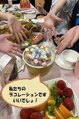 その後は、お互いがより仲良くなれるように歓迎会が行われました。美味しい食事に、自己紹介。協力しながらのプリンのデコレーション。ビンゴゲーム等、避難訓練で硬かった表情は、すっかりにこやかに打ち解けて、お腹いっぱい楽しい時間を共有できました。